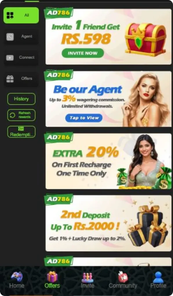 AD786 App is an online platform where users can play simple games and potentially earn money. The app is easy to use, allowing players to enjoy games, track rewards, and withdraw earnings smoothly.